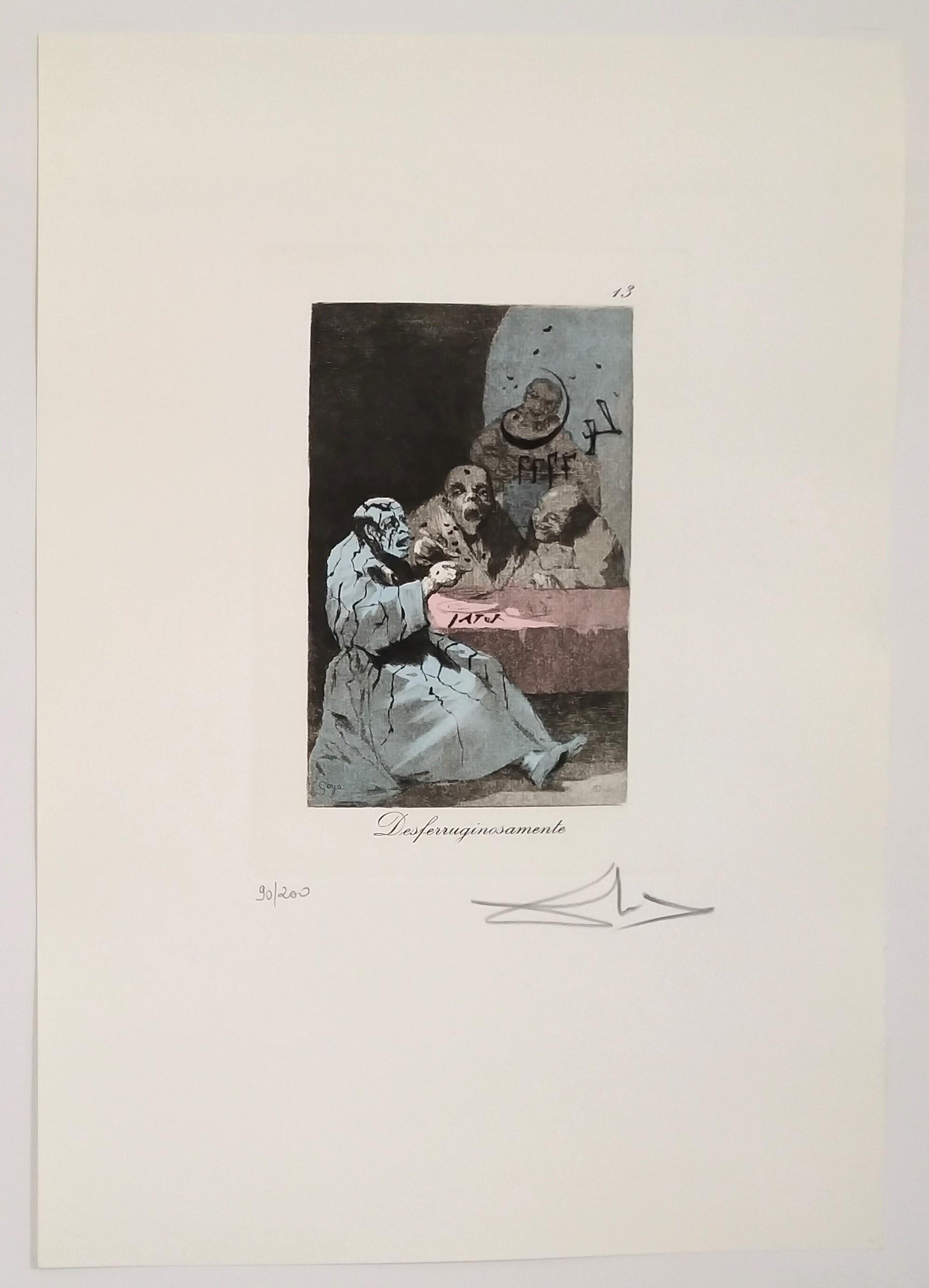 1973 schuf Salvador Dalí eine Metamorphose von Goyas Suite in ein farbenfrohes surrealistisches Meisterwerk. Jedes Stück der nummerierten Auflage von 200 ist von Salvador Dalí handschriftlich signiert und eine echte Rarität für die Bewunderer von Dalí und Goya.