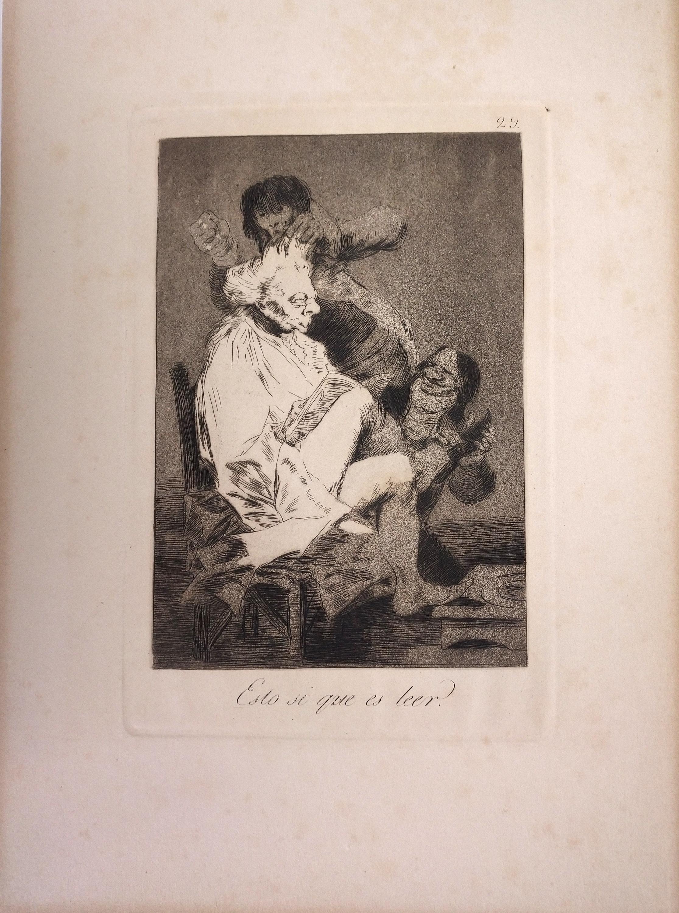 Goyas Los Caprichos war ein künstlerisches Experiment, das den törichten Aberglauben in der spanischen Gesellschaft des 18. Jahrhunderts bloßstellte. Goya beschrieb die Serie als Darstellung der unzähligen Schwächen und Torheiten, die in jeder zivilisierten Gesellschaft zu finden sind, und der weit verbreiteten Vorurteile und betrügerischen Praktiken, die durch Sitten, Unwissenheit oder Eigeninteresse üblich geworden sind. Das Werk wurde vor der geplanten Veröffentlichung im Jahr 1799 aus dem öffentlichen Verkauf genommen. Nur ein formeller Befehl von König Carlos IV. bewahrte Goya davor, vor die spanische Inquisition zitiert zu werden.