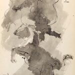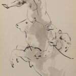 The book consists of 32 pages of text followed by Picasso’s illustrations which reproduce three sketchbooks from 1959. The works deal with all stages of bullfighting and Georges Boudaille highlights Picasso’s persevering loyalty to portraying the theme of bullfighting since 1890. The plates are black & white, sepia and color, and many are single-sided. Part of the sketchbooks have never been found (the drawings of March 2 and 3, notably representing Jacqueline on horseback). Among the most astonishing images, there is a Christ on the cross saving a picador from death.
