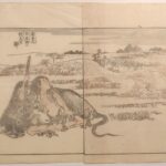 This autumn the master [Hokusai] happened to visit the Western Province and stopped over at our city [Nagoya]. We all met together with the painter Gekkōtei Bokusen (月光亭墨僊) [Utamasa II, well-known Nagoya artist, pupil of Hokusai’s, and collator of Hokusai’s later work] at the latter’s residence, it being a very joyous occasion. And there over three hundred sketches of all kinds were made – from immortals, Buddhas, scholars, and women on down to birds, beasts, grasses, and trees, the spirit of each captured fully by the brush.
