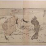The first volume of ‘Manga’ (Defined by Hokusai as ‘Brush gone wild’), was an art instruction book published to aid his troubled finances. Shortly after he removed the text and republished it. The Manga show a dedication to artistic realism in the portrayal of people and the natural world. The work was an immediate success, and the subsequent volumes soon followed. The work became known to the West after Dutch-employed German physicist Philipp Franz von Siebold took lithographs of some of the sketches to Europe where they appeared in his influential book on Japan, Nippon: Archiv Zur Beschreibung von Japon in 1832. The work began to circulate in the West soon after Matthew C. Perry’s entry into Japan in 1854.