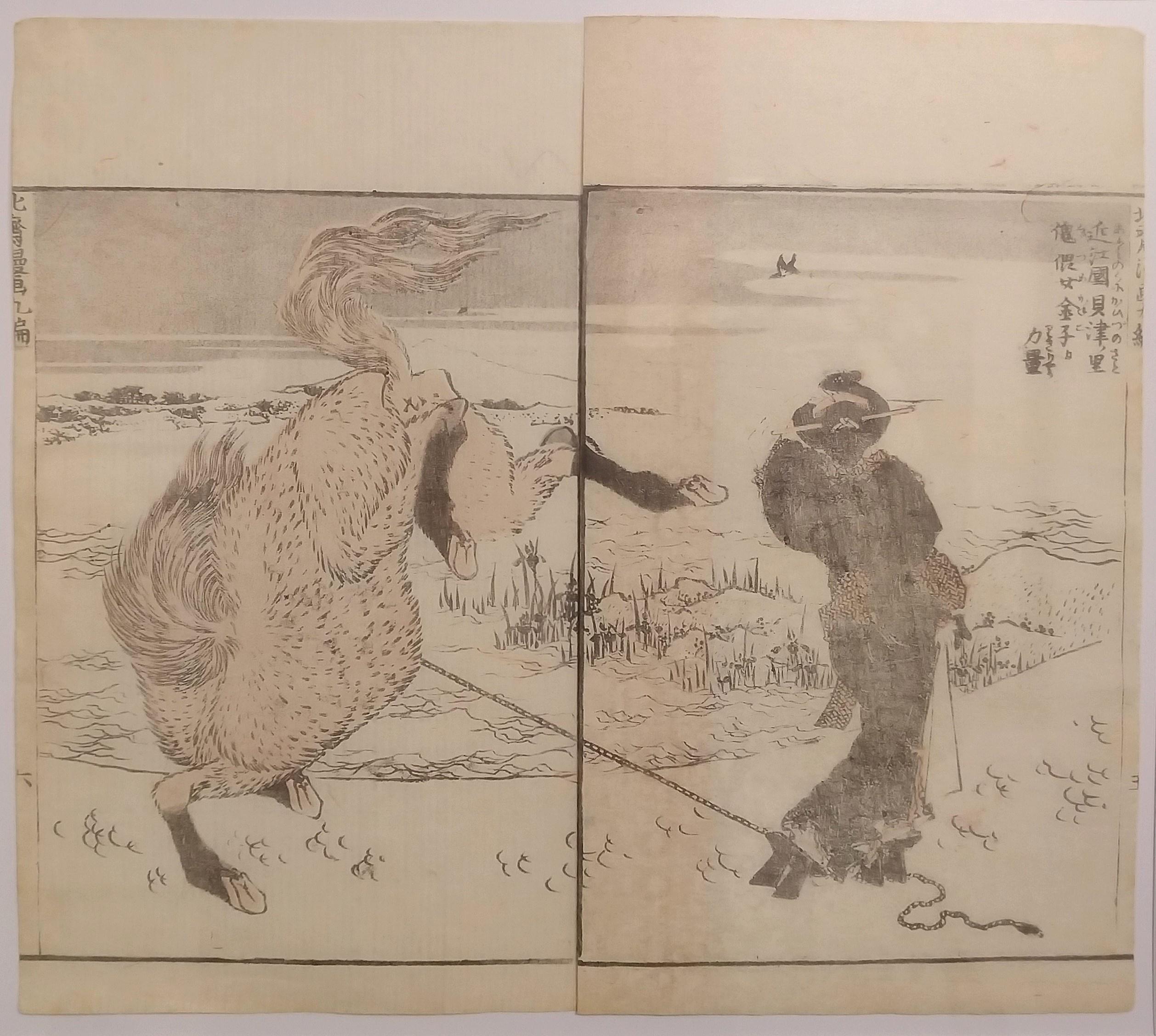 This autumn the master [Hokusai] happened to visit the Western Province and stopped over at our city [Nagoya]. We all met together with the painter Gekkōtei Bokusen (月光亭墨僊) [Utamasa II, well-known Nagoya artist, pupil of Hokusai’s, and collator of Hokusai’s later work] at the latter’s residence, it being a very joyous occasion. And there over three hundred sketches of all kinds were made – from immortals, Buddhas, scholars, and women on down to birds, beasts, grasses, and trees, the spirit of each captured fully by the brush.