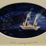 Bevor wir gemeinsam im Blaesheimer Bœuf essen gehen, wo er schon seine Gewohnheiten hat, zeigt uns Raymond sein Atelier. Er zeigt uns seine letzten, Namibia gewidmeten, Grafiken. Sie sind grandios. In seinem Depot befinden sich 50 Jahre kreatives Schaffen: Keramiken, Skulpturen, Objektkästen, Installationen, Leinwände, Zeichnungen… Er entschuldigt sich, es ist etwas chaotisch, aber er bereitet für März eine Ausstellung in Offenburg vor. Er spricht von seinen Werken, erzählt uns ihre Geschichte, wie einen Film; lauter kleine Szenen, die sich aneinanderreihen. Und da sehen wir plötzlich den kleinen, 5 oder 6-jährigen Jungen vor uns, der sich spielerisch eine Welt aufbaut, sich eine Geschichte ausdenkt, alle Figuren darstellt… Und wir bekommen einen Einblick in den Kopf des Künstlers.