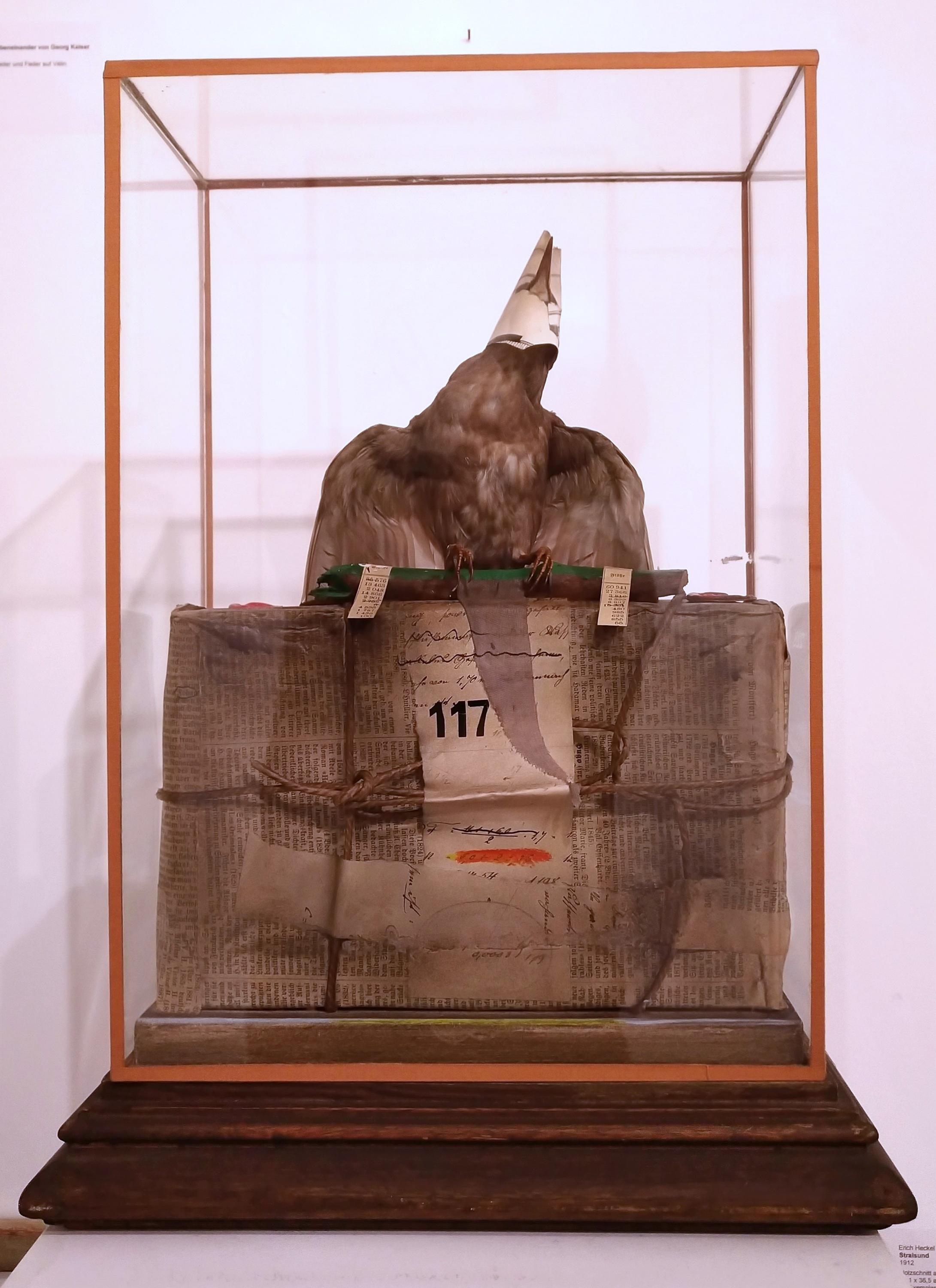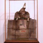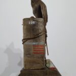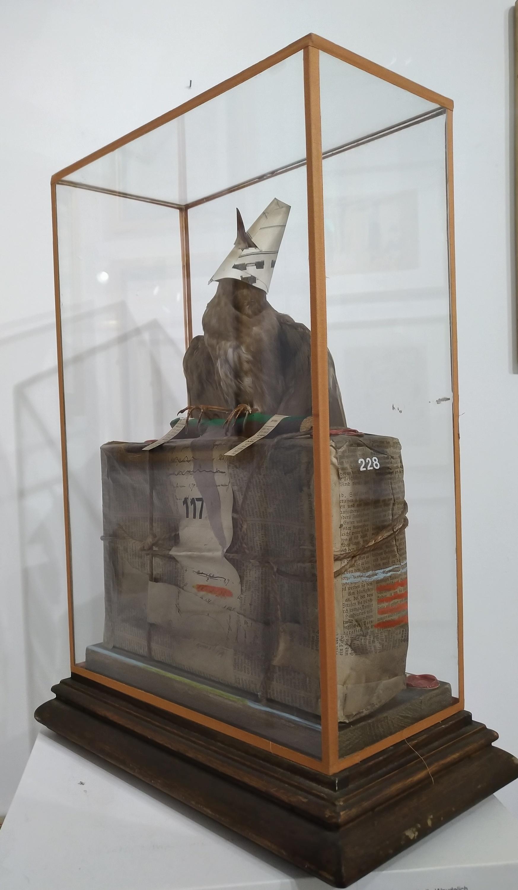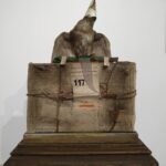 Bevor wir gemeinsam im Blaesheimer Bœuf essen gehen, wo er schon seine Gewohnheiten hat, zeigt uns Raymond sein Atelier. Er zeigt uns seine letzten, Namibia gewidmeten, Grafiken. Sie sind grandios. In seinem Depot befinden sich 50 Jahre kreatives Schaffen: Keramiken, Skulpturen, Objektkästen, Installationen, Leinwände, Zeichnungen… Er entschuldigt sich, es ist etwas chaotisch, aber er bereitet für März eine Ausstellung in Offenburg vor. Er spricht von seinen Werken, erzählt uns ihre Geschichte, wie einen Film; lauter kleine Szenen, die sich aneinanderreihen. Und da sehen wir plötzlich den kleinen, 5 oder 6-jährigen Jungen vor uns, der sich spielerisch eine Welt aufbaut, sich eine Geschichte ausdenkt, alle Figuren darstellt… Und wir bekommen einen Einblick in den Kopf des Künstlers.