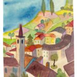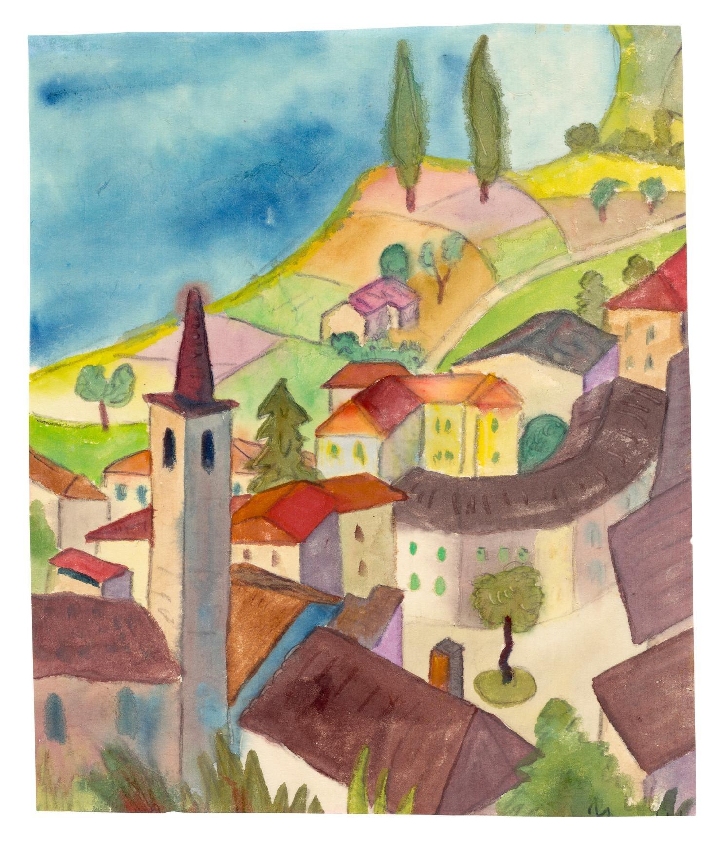 ‘He is a poet who paints and a painter who writes poetry. His use of colour is no less poetic than his use of words. Like fairy tales, they show the unreal as real and the real as unreal.’ (1) This passage by Volker Michels aptly describes Hermann Hesse’s relationship to painting. The painter not only attempted to depict reality in his works, but also created a fairytale-like ideal in his pictures. In his watercolours, he was increasingly concerned with expressing his feelings at the sight of the motif and capturing the characteristics of the landscapes by means of reduction. In our two watercolours, too, the world of appearances surrounding the artist is paraphrased in a free manner. While clear geometric colour fields framed by delicate pencil lines dominate the friendly Italian landscape on the shores of Lake Lugano in ‘San Mamete (Valsolda)’, the artist created the work ‘Ticino Village Landscape’ in a more abstract, cubist creative phase. Here, the geometric, borderless colour forms merge into one another, overlapping in their pale shades and thus creating a colourful restlessness that captures the wild beauty of Ticino’s nature. The choice of a friendly, bright colour scheme runs through Hesse’s entire painterly oeuvre and could be due to the artist’s state of mind at the time, who, repulsed by the horrors of war, sought a kind of peaceful counter-world in his paintings. Hesse only began to turn to painting at the age of 40 as a result of his traumatising experiences during the First World War. In particular, after moving to the small village of Montagnola near Lake Lugano, he created an extensive oeuvre of paintings as a self-taught artist, which primarily focused on the atmospheric mountain landscape of Ticino. Numerous poetry illustrations were also created during this time. At the beginning, Hesse dedicated the proceeds from his paintings to the welfare of prisoners of war, later he supported emigrants and needy colleagues with the sales of his illustrated poetry cycles. Both the delicate, almost ornamental bouquet of flowers in the poem ‘Stufen’ and the landscape in ‘Zur Erinnerung an Montagnola’, which resembles a postcard or a window detail, lend Hermann Hesse’s handwritten poems a visual freshness and personal touch that lend his poetry an appropriate visual framework. 1 Volker Michels, ‘Farbe ist Leben – Hermann Hesse als Maler’, pp. 11-28, in: Galerie Ludorff, ‘Malerfreude – Hermann Hesse’, exhib. cat., Düsseldorf 2016, p. 19.